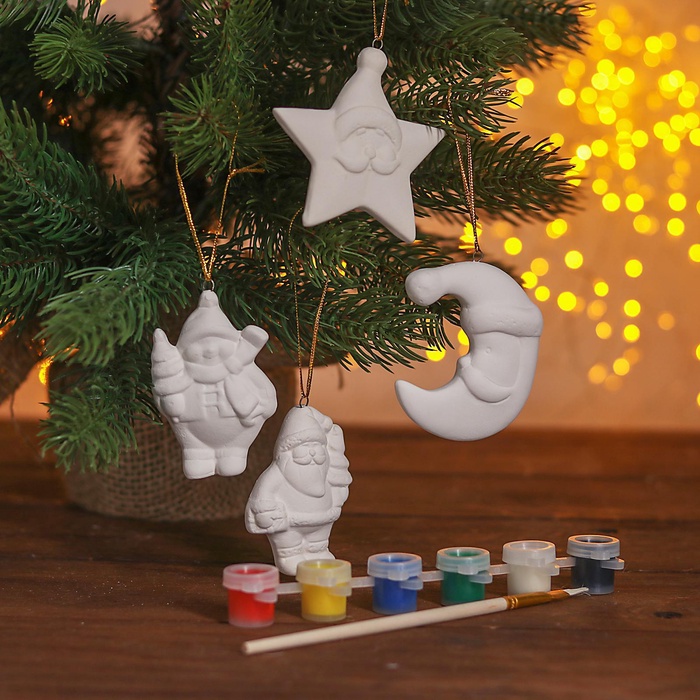 Набор ёлочных украшений под раскраску 4 шт. «Прелесть» с подвесом, кисть