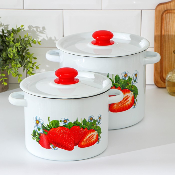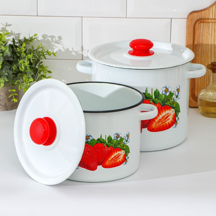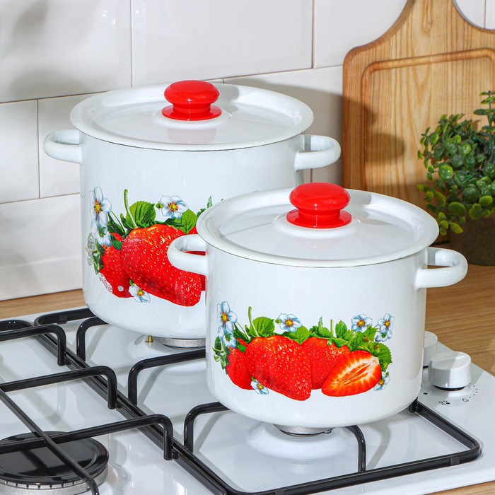 Кастрюли сделаны из качественной стали, покрытой эмалью с декоративным рисунком. Они отлично подходят для приготовления и хранения различных блюд.