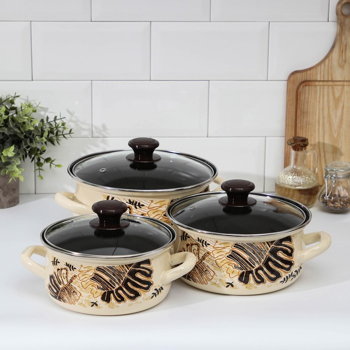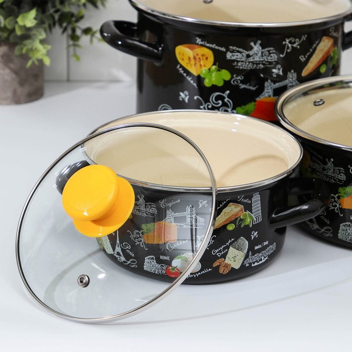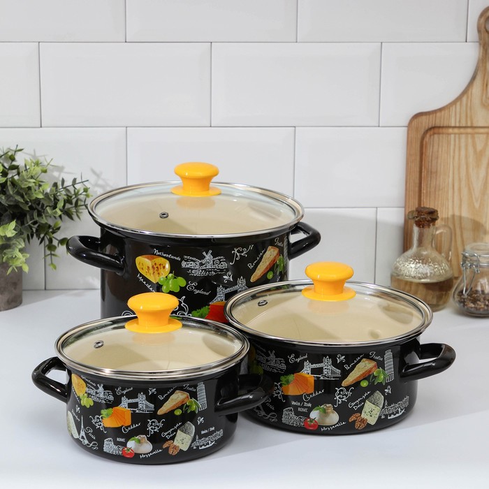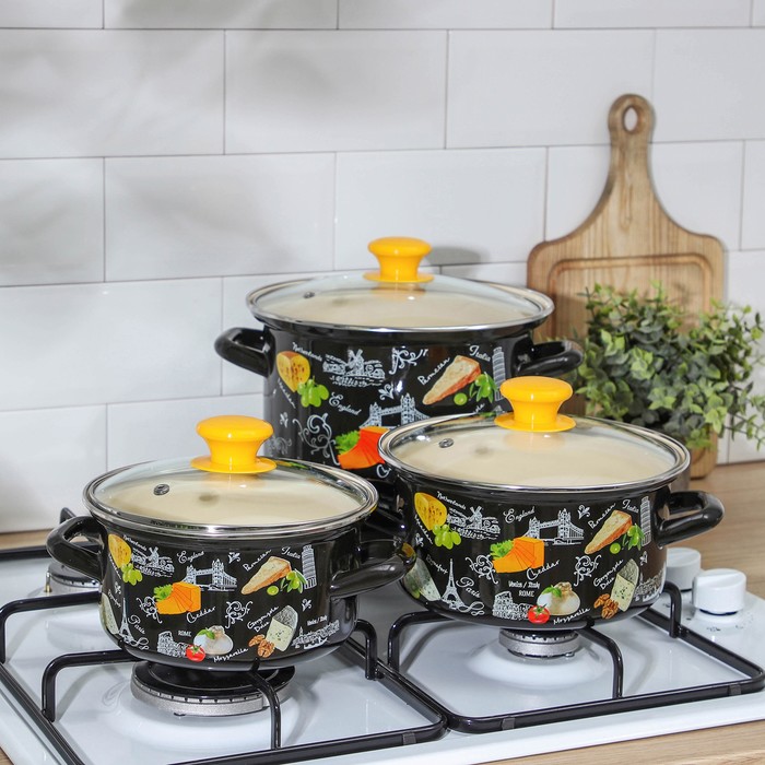 Все кастрюли выполнены из высококачественной стали и покрыты прочной эмалью, которая защищает посуду от коррозии и обеспечивает её долговечность. Эмалевое покрытие легко моется и не впитывает запахи, что делает набор идеальным выбором для приготовления различных блюд.