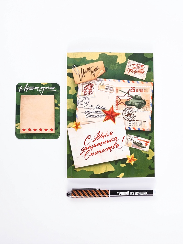 Набор: Ежедневник А5, 80 л, блок бумаги и ручка "С 23 февраля"