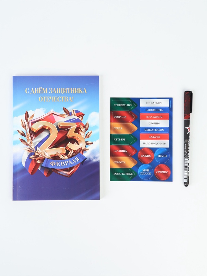 Набор ежедневник А5, 80 л в твердой обложке и ручка «23 февраля: Сила, воля, характер»