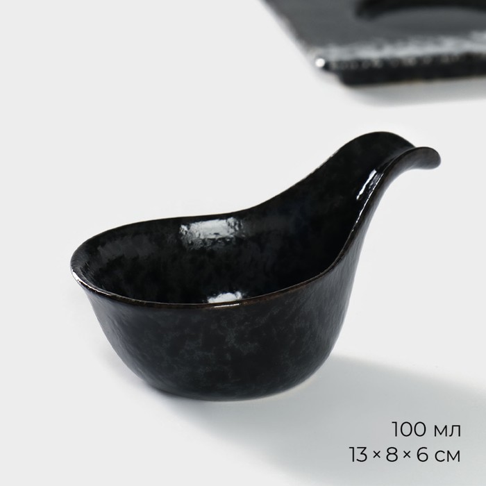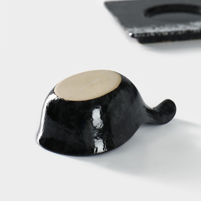 Набор фарфоровых соусников на фарфоровой подставке Magistro «Ночной дождь», 4 предмета: соусник 100 мл, подставка 35×12×1 см, цвет черный