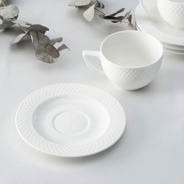 Набор фарфоровый чайный Wilmax «Юлия Высоцкая», на 6 персон, 12 предметов: 6 чашек 240 мл, 6 блюдец, цвет белый
