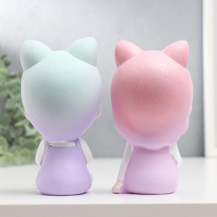 Каждая фигурка размером 19×6×6.5 см выполнена из качественного полистоуна с тщательной проработкой деталей. Разноцветное покрытие подчёркивает характер персонажей — человеческого ребёнка и его небесного кошачьего спутника, создавая гармоничный дуэт.