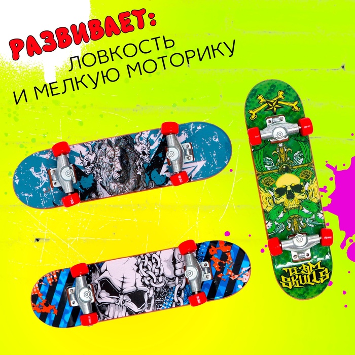 - В комплект входят 3 фингерборда — уменьшенные версии скейтборда.