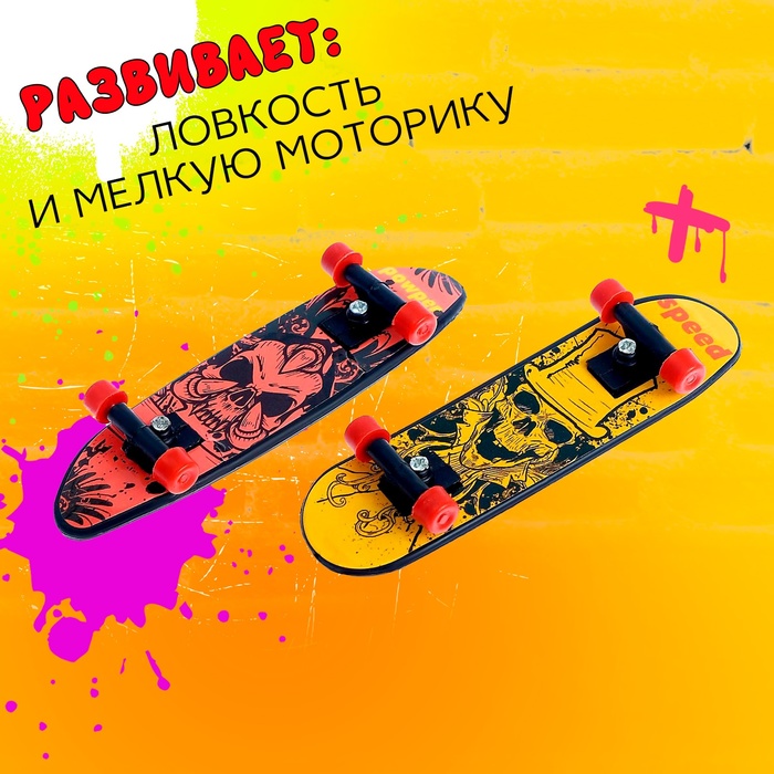 - В комплект входят 2 фингерборда — уменьшенные версии скейтборда.