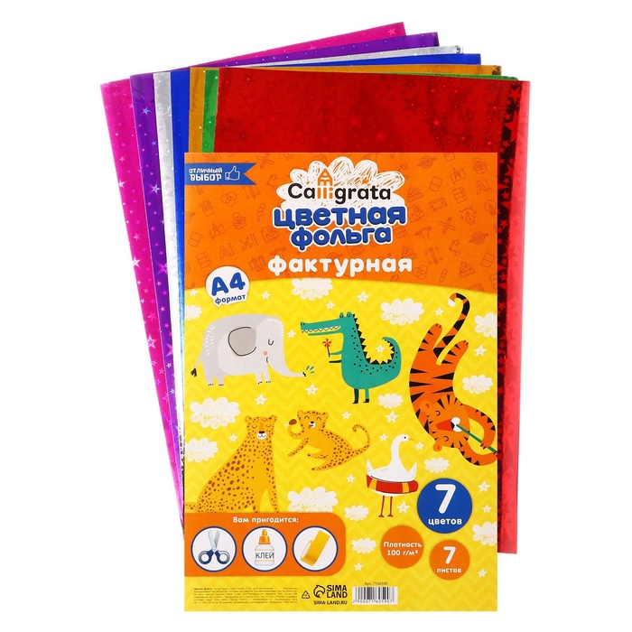 Набор фольги цветной формат А4, 7 листов, 7 цветов, ГОЛОГРАФИЧЕСКОЙ звезды, плотность 100г/м²