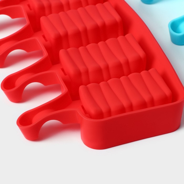 - Силиконовая форма для мороженого изготовлена из пищевого материала, имеет гибкие, мягкие стенки, благодаря чему десерты извлекаются очень легко.