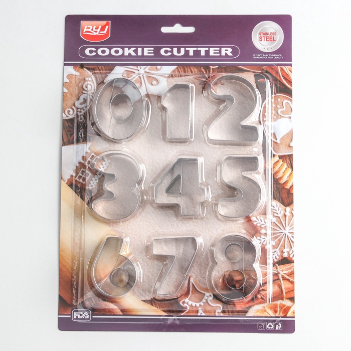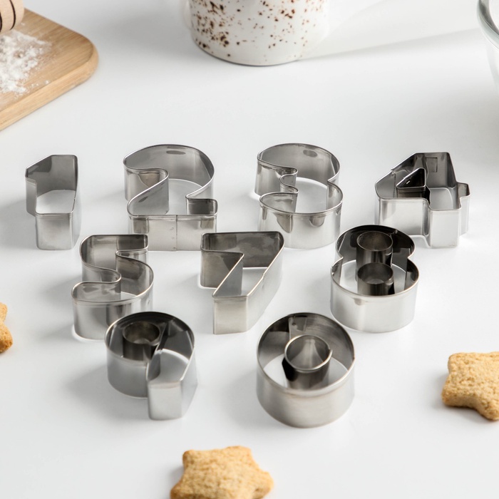 Набор форм для печенья «Цифры», 9 шт., серебристый