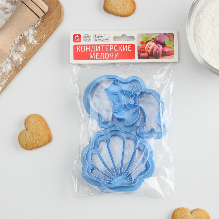 Набор форм для печенья Доляна «Русалочка», 2 шт., 14×13×2 см, цвет голубой