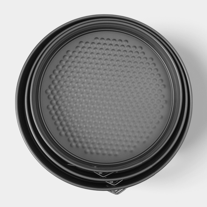 Набор форм для выпечки Доляна «Элин. Круг», 3 предмета: d=22/24/26 см, съёмное дно, антипригарное покрытие, чёрный