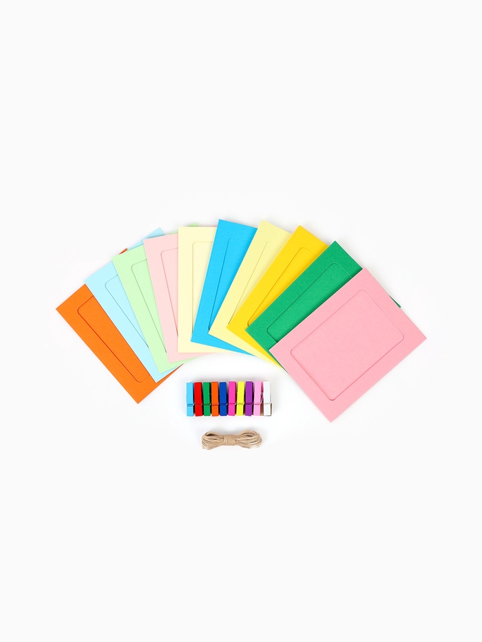 Набор фоторамок на прищепках «Цветные моменты-мега», веревка, прищепки и фоторамки 10 шт.