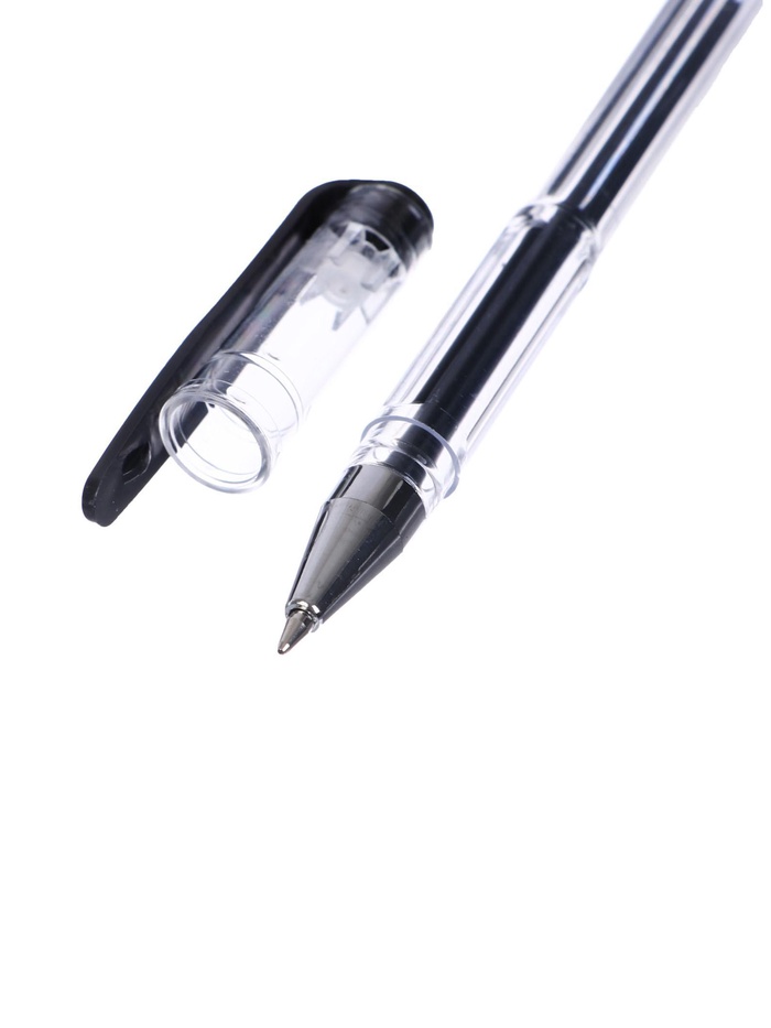 Две одинаковые гелевые ручки — это рассчитанный минимум для экзамена. Одна работает, вторая ждёт в пенале как гарантия. Чёрные чернила и тонкая линия 0,5 мм соответствуют требованиям и подчеркивают аккуратность почерка.