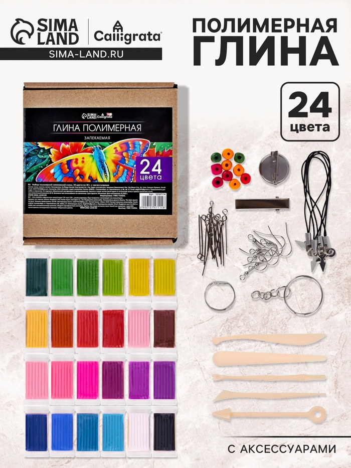 Набор для лепки (24 цвета, 37 предметов) — это всё необходимое для создания украшений, миниатюр и декора. Глина запекается в домашней духовке, сохраняя чёткость деталей.
