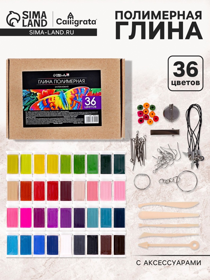 Профессиональный набор для творчества без границ!Полимерная глина 36 цветов с инструментами — это полный комплект для создания украшений, декора и художественных работ. Готовые изделия запекаются в обычной духовке, сохраняя идеальную форму.