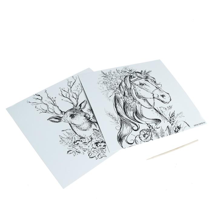 Гравюра представляет собой многослойное панно, покрытое чёрной краской, на которое нанесён контур рисунка. С помощью особого скребка (штихеля), который входит в набор, путём процарапывания и создается гравюра. Новая серия с уникальным дизайном порадует вас разнообразием рисунков.