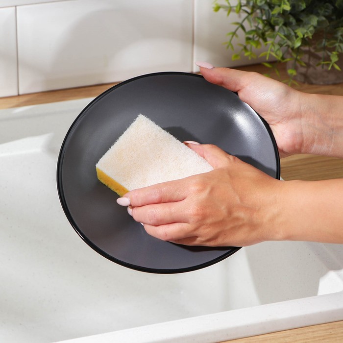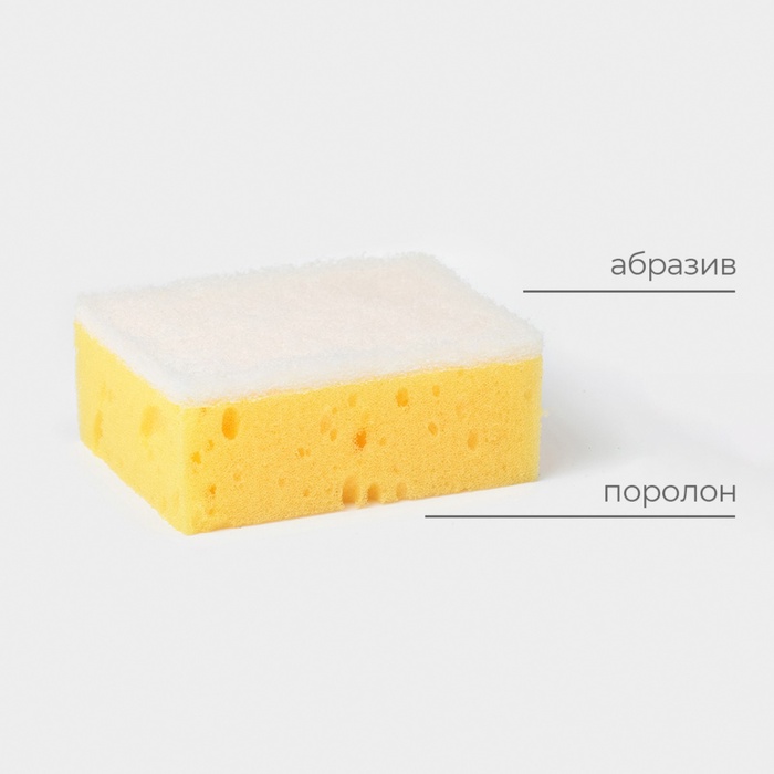 - Высокая эффективность: крупнопористый поролон быстро и легко удаляет остатки пищи и жир, облегчая мытье посуды.