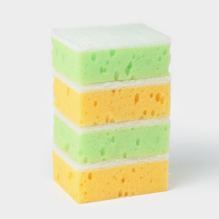 Губки выполнены из крупнопористого поролона, что обеспечивает обильное пенообразование. Благодаря этому ваши средства для мытья посуды будут использоваться максимально эффективно, создавая густую и стойкую пену, которая легко справляется с любыми загрязнениями.