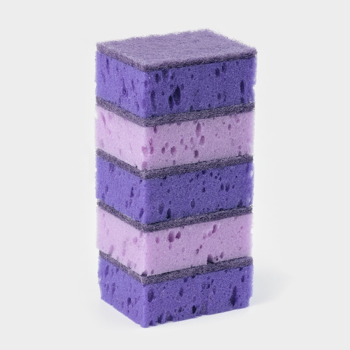 Набор губок для мытья посуды Raccoon «Версаль», 5 шт., 9×6.5×3.5 см, крупнопористый поролон, фиолетовый