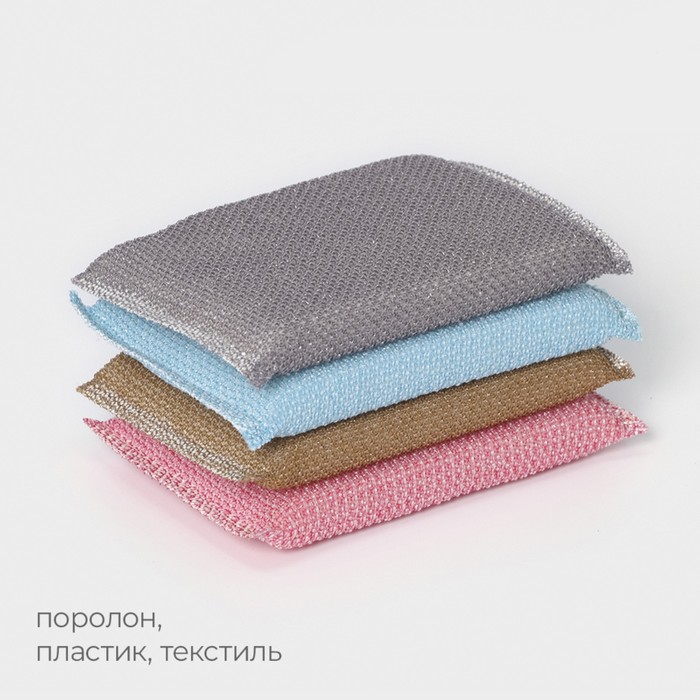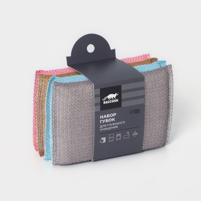 Набор губок-скраберов Raccoon — профессиональное решение для сложных загрязнений. 4 многослойные губки размером 13.5×8×1.4 см в разноцветном миксе. Сочетание поролона и пластиковой нити для эффективной очистки любой поверхности.
