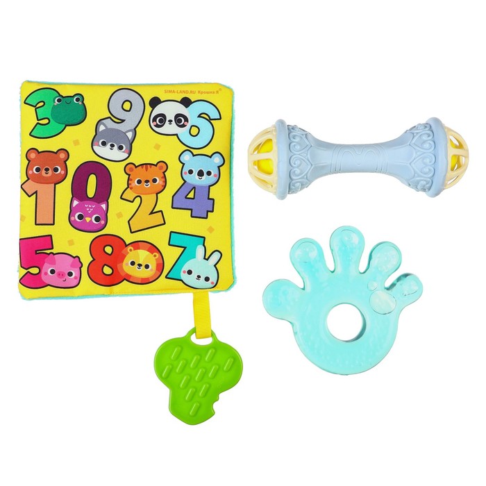 Набор из 3-х развивающих игрушек станет прекрасныи подарком крохе, который только начинает познавать мир, веселая погремушка, прорезыватель и платочек - шуршалка станут прекрасным, занимательным развлечением!