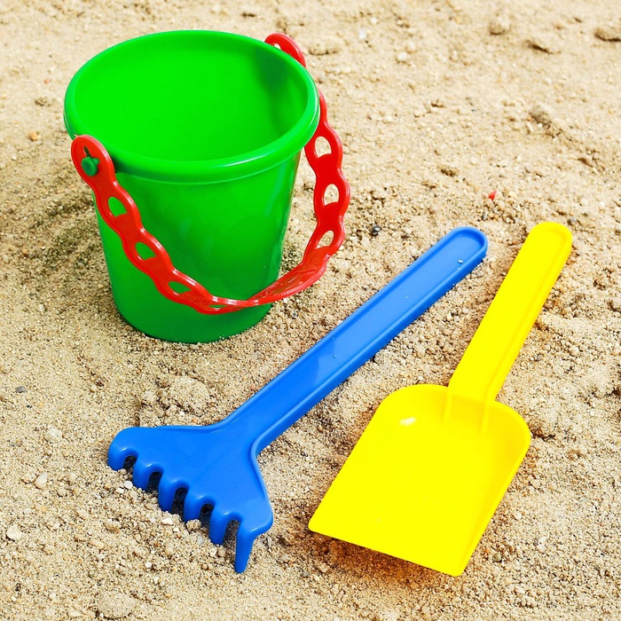 - Ведёрко — удобное и прочное, подходит для переноски песка и воды.