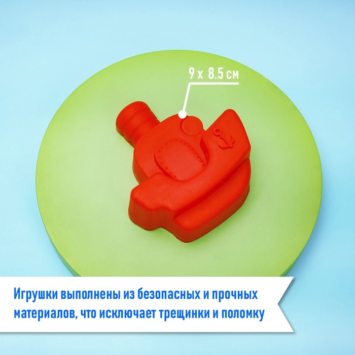 - Четыре формочки для песка — разнообразие фигурок сделает игру ещё интереснее.