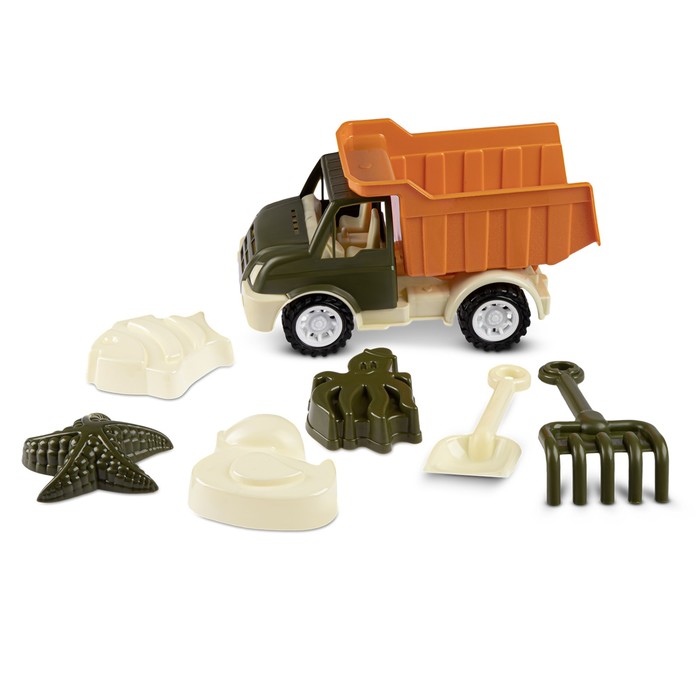 Создайте идеальный песочный мир! Набор игрушек для песочницы из 7 предметов — это всё, что нужно для увлекательных игр на свежем воздухе. Самосвал, лопатка, грабельки и формочки помогут ребёнку строить замки, лепить куличики и исследовать песок с удовольствием.