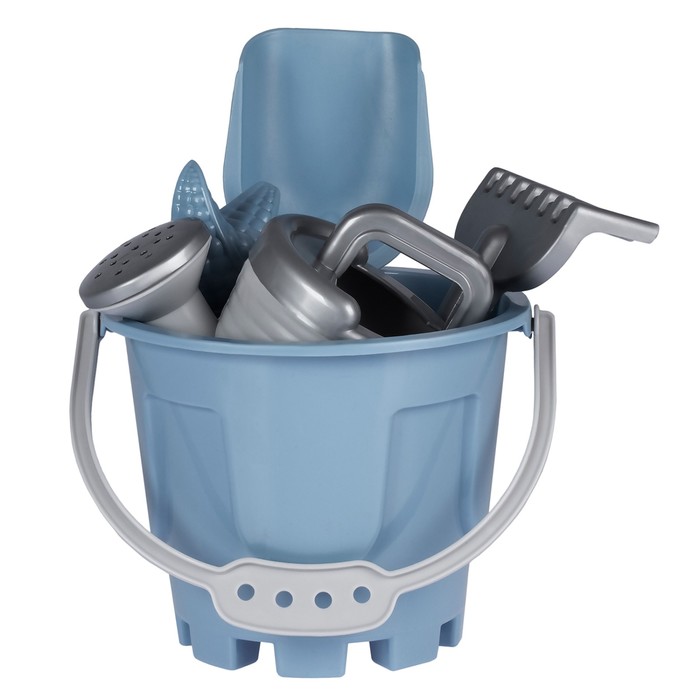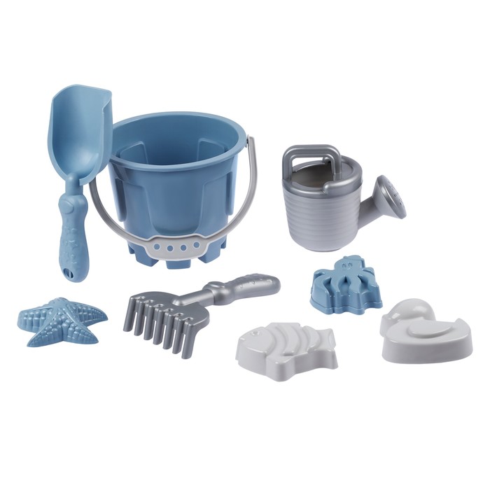 Набор игрушек для песочницы, 8 предметов: ведро 1.2 л, лопатка, грабли, 4 формочки, лейка, бледно голубой