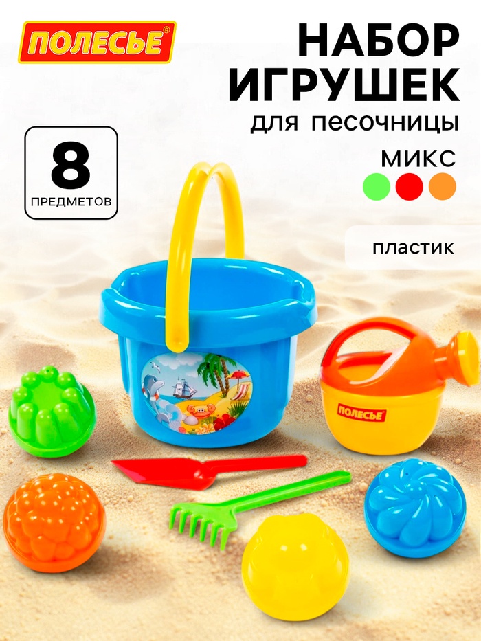 Создайте идеальный песочный мир! Набор игрушек для песочницы из 8 предметов — это всё, что нужно для увлекательных игр на свежем воздухе. Ведро, лопатка, грабельки, лейка и 4 формочки помогут ребёнку строить замки, лепить куличики и исследовать песок с удовольствием.
