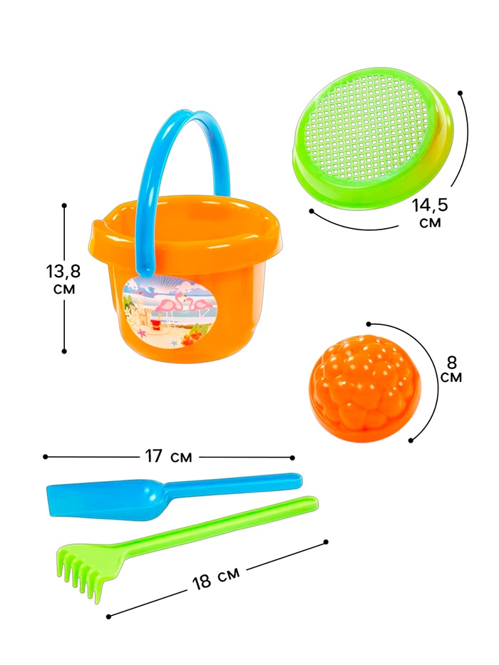- В набор входят все необходимые инструменты для игр в песочнице. Ребёнок сможет копать, просеивать, строить и украшать свои песочные шедевры.