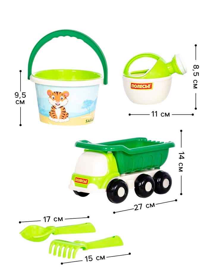 Набор игрушек для песочницы «Сафари», 6 предметов: самосвал, ведро, ситечко, совок, грабельки, лейка, МИКС