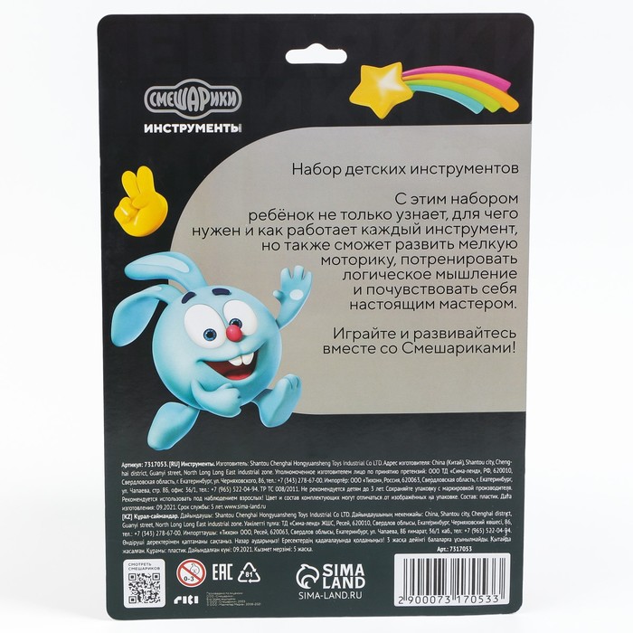 Помогите малышу почувствовать себя настоящим мастером! Детский набор инструментов «Смешарики» — 7 безопасных предметов для первых «ремонтных» работ. Любимые герои превратят игру в полезное занятие.