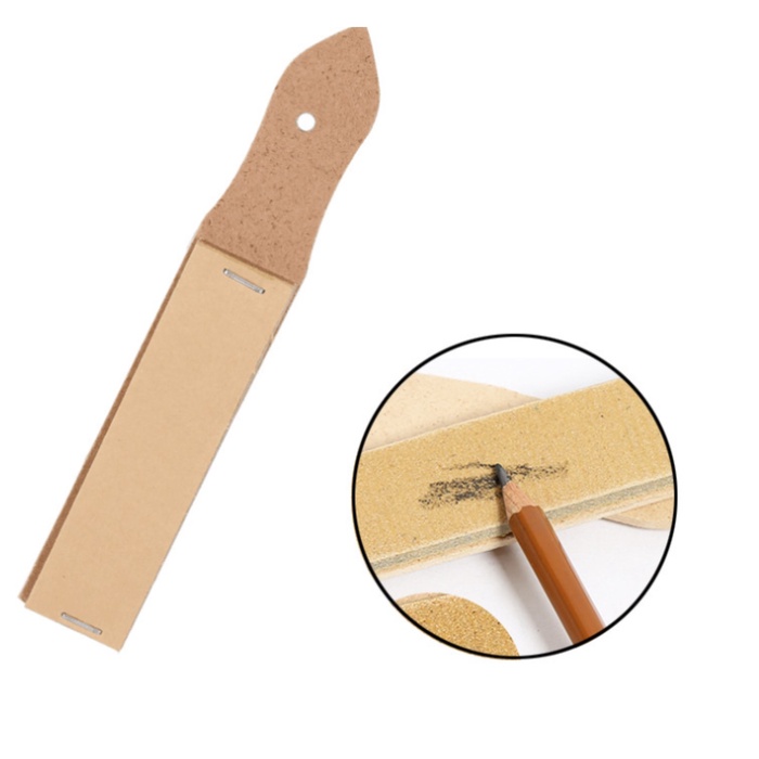 Наждачная бумага состоит из 12 листов соединенных между собой скобой и закрепленных на ручке. С помощью бумаги можно заострить грифель карандаша любой твердости, стержень графита и т.д.