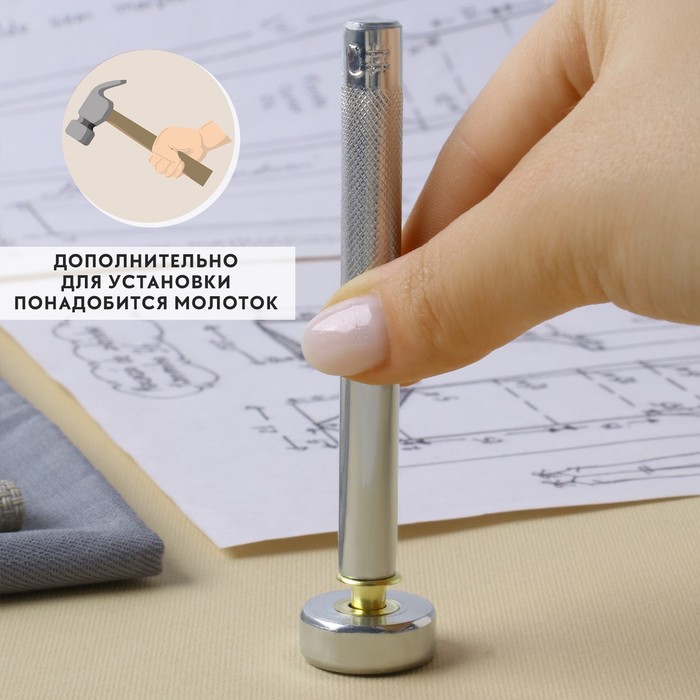 - Стук молотком: Осторожно ударьте по колодцу молотком. Это приведёт к закреплению кольца на основе. Достаточно нескольких лёгких ударов, чтобы надежно зафиксировать люверс.
