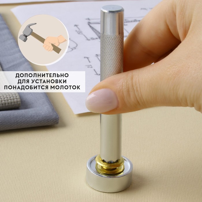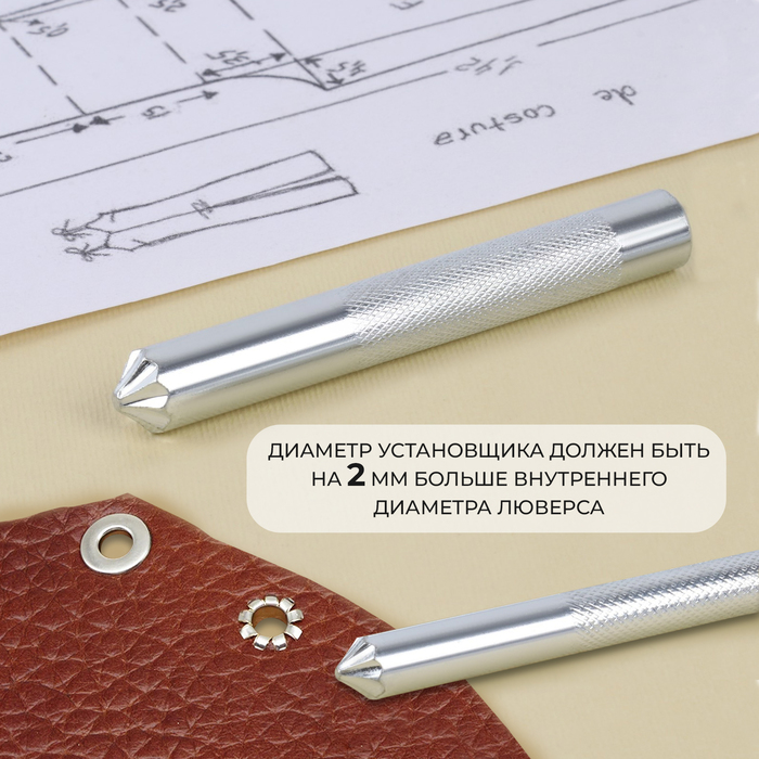 Набор инструментов «Ромашка» предназначен для ручной установки люверсов с помощью молотка. Такой набор позволит установить фурнитуру на ваше изделие в домашних условиях. Отличительное преимущество данного инструмента в том, что с изнаночной стороны люверс расплющется в форме ромашки.