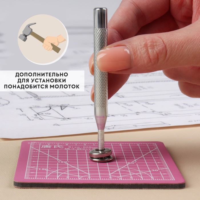Ручные инструменты предназначены для установки кнопок «Альфа», используются для ремней, сумок, одежды и обуви. С помощью данных принадлежностей можно легко, а главное, качественно установить необходимую фурнитуру на ваше изделие. Широко применяются в ателье, для ремонта, пошива одежды, соединения деталей и др.