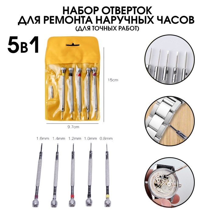Набор отверток 5 в 1 включает в себя весь спектр самых необходимых отверток для работы с часами и другими работами в доме, а также ремонта электронной техники. В мужском наборе инструментов предусмотрены 5 видом бит. Данный Мини - набор незаменим для быстрого и эффективного ремонта.