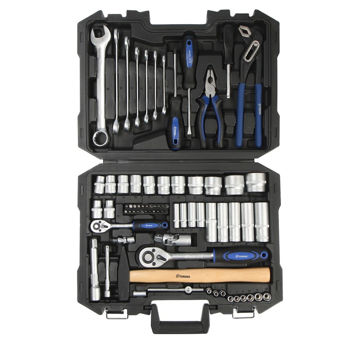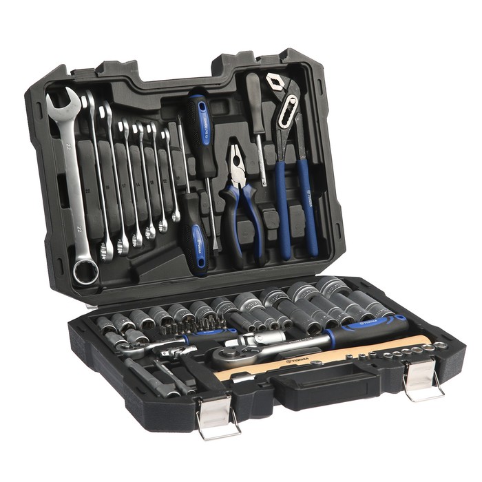 Все компоненты набора удобно разместились в надежном пластиковом кейсе, где все расположено на своих местах в специальных углублениях. Благодаря такому расположению инструмента, он почти не будет шуметь при транспортировке, а еще пластик, в отличие от текстиля не маркий.