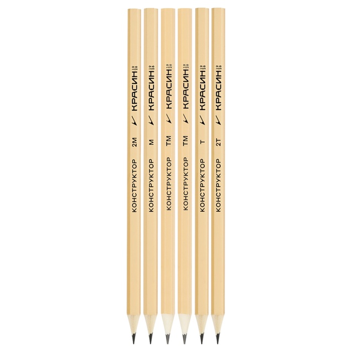 Набор карандашей чернографитных «Красин. Конструктор», 6 штук, разная твёрдость, шестигранные, деревянные