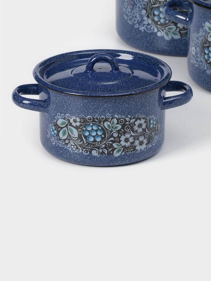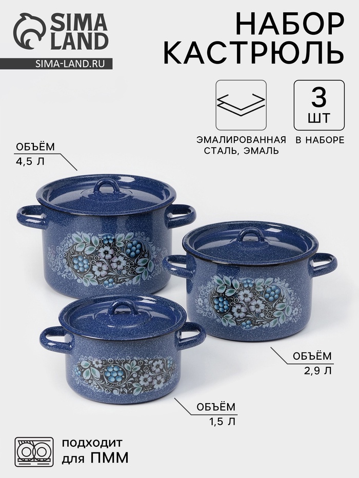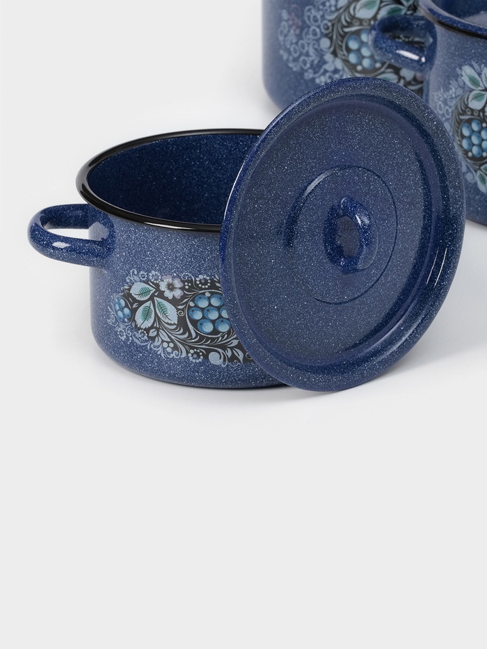 Набор кастрюль «Голубика», 3 предмета: 1,5 л, 2,9 л, 4,5 л, эмалированные крышки, индукция, цвет синий