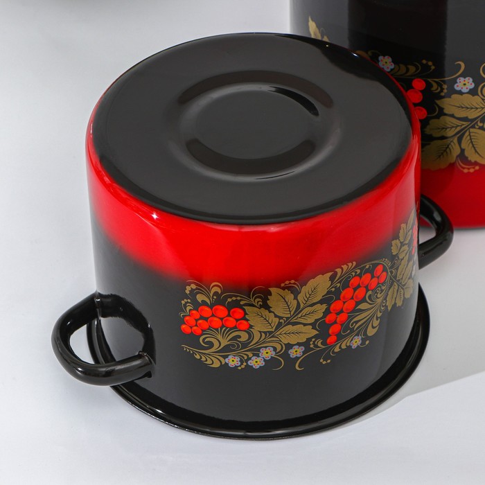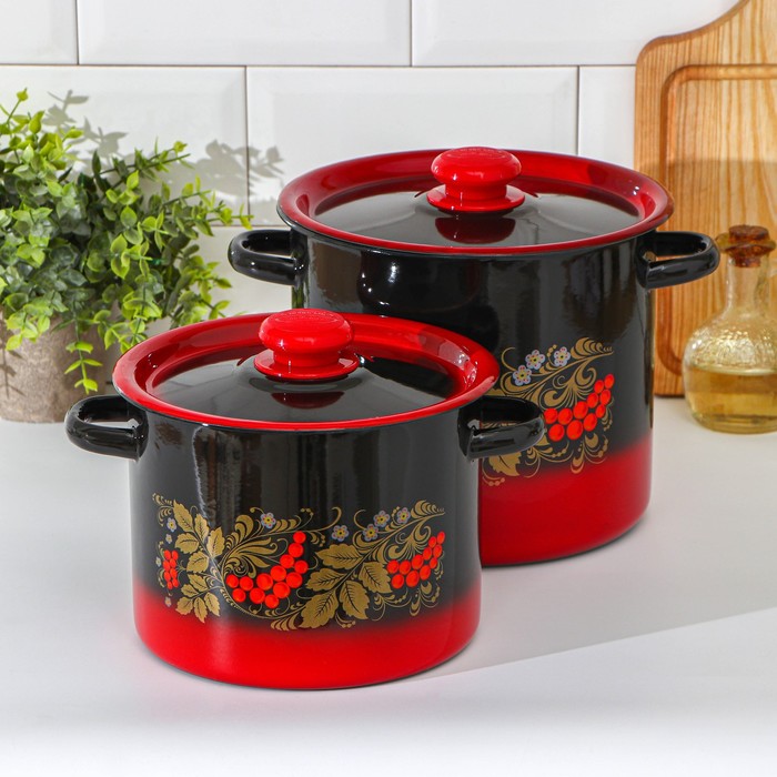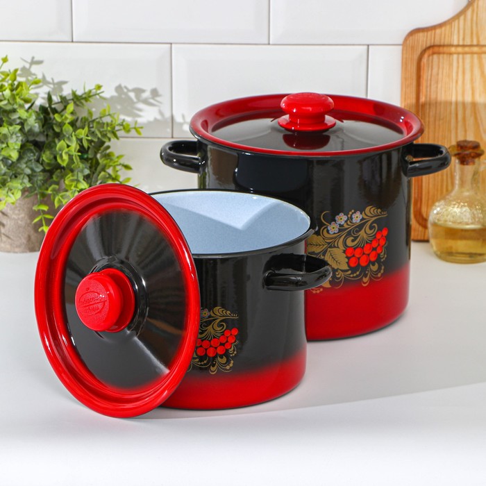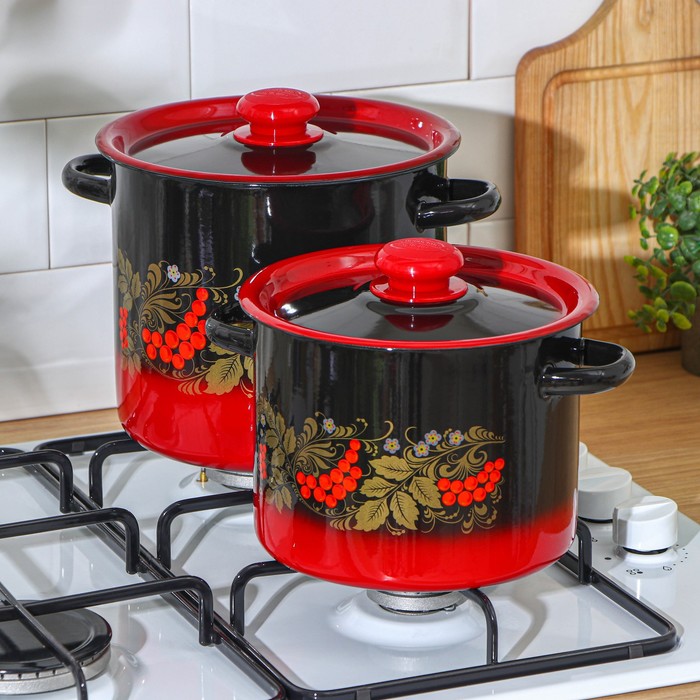 Кастрюли сделаны из качественной стали, покрытой эмалью с декоративным рисунком. Они отлично подходят для приготовления и хранения различных блюд.