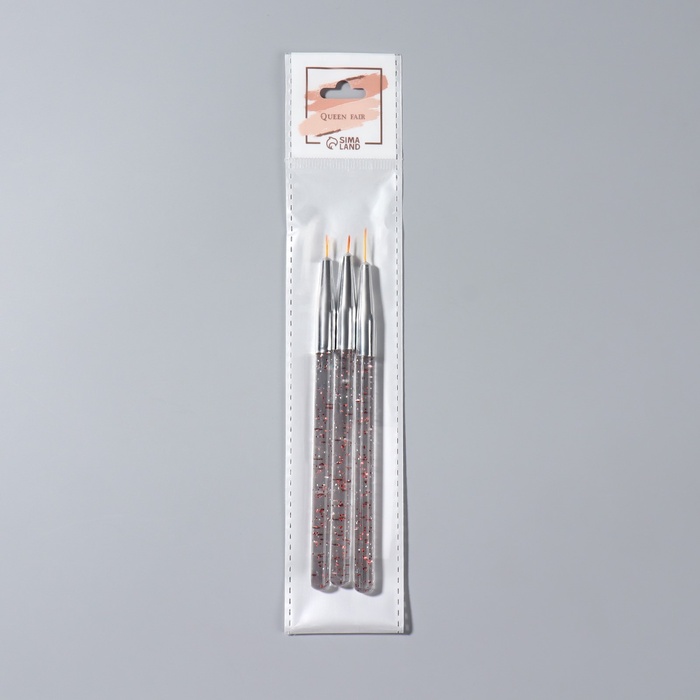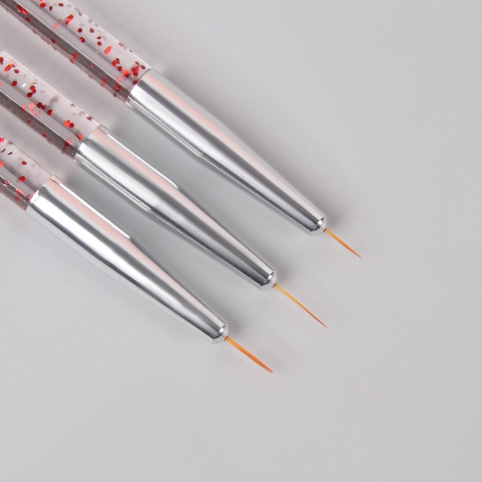 Для создания различных дизайнов используются специальные кисти для рисования на ногтях, отличающиеся формой, длиной и жесткостью ворса. Кисточка служит для выполнения мелкого рисунка. Краска набирается на кончик, и кисть идёт практически перпендикулярно поверхности.