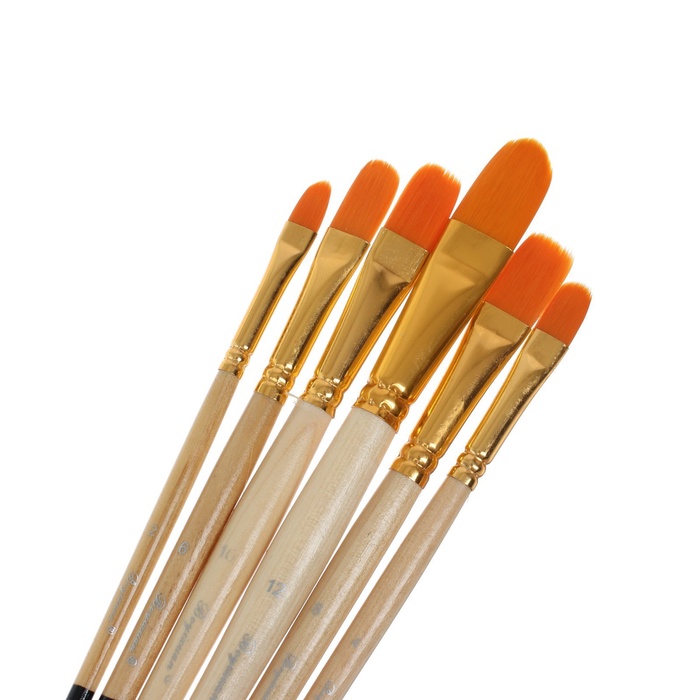Набор кистей для рисования, синтетика, 6 штук: №2, 4, 6, 8, 10, 12 плоские, закругленные, деревянная ручка, международный размер