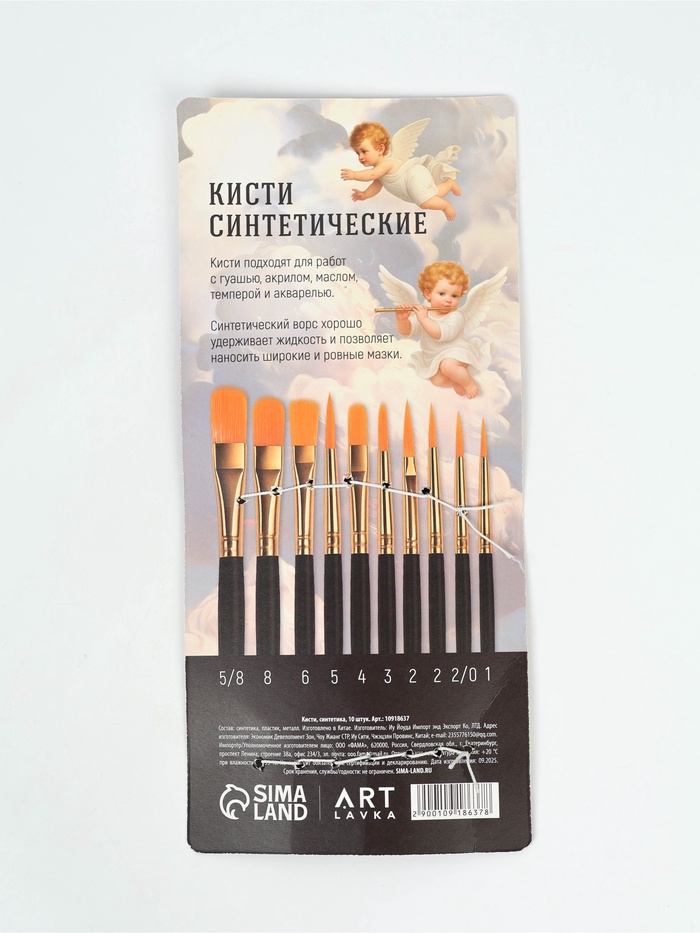 Набор кистей синтетика, 10 шт