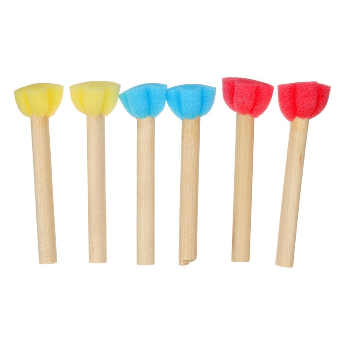 Набор поролоновых спонжей помогает создавать фактурные поверхности и мягкие переходы цвета. Шесть инструментов с деревянной ручкой открывают новые возможности для детского творчества и декоративных работ.
