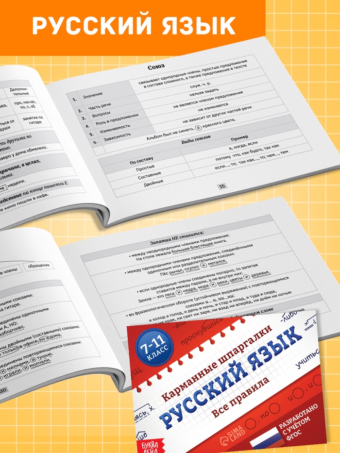 Набор книг "Карманные шпаргалки для 7-11 класса", 4 книги по 64 стр