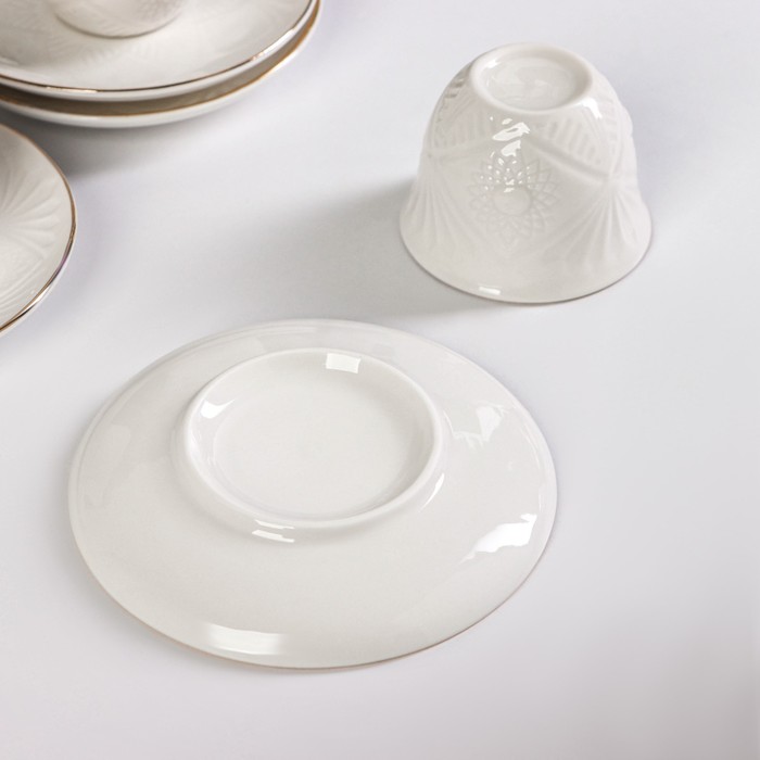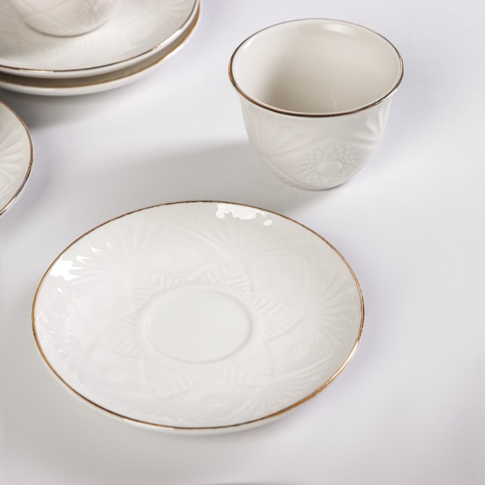 Чайный набор изготовлен из качественной керамики. Посуда из керамики отличается прочностью и надёжностью, устойчива к появлению царапин и резким перепадам температур. Благодаря оригинальному дизайну с золотой окантовкой, набор отлично впишется в интерьер вашей кухни, а также прекрасно подойдёт в качестве подарка.