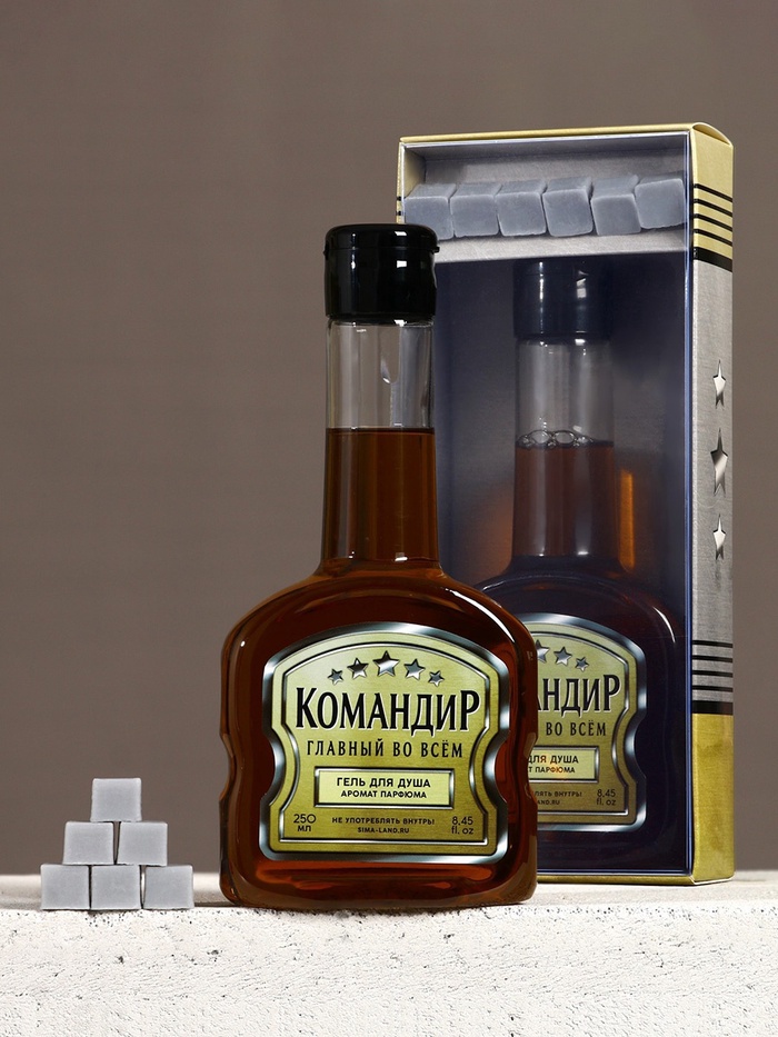 Набор «Командир»: гель для душа во флаконе коньяк, аромат сандал и бергамот, 250 мл; мыло-камни, 5 шт.