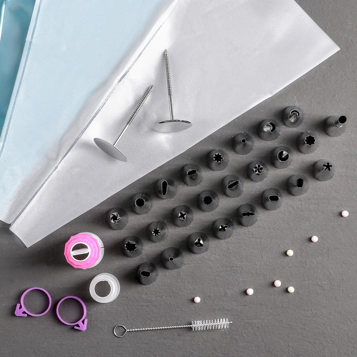 Набор предназначен для украшения выпечки и готовых кондитерских изделий. Наполните мешок айсингом, кремом или мастикой, выберите насадку — и приступайте к созданию кулинарного шедевра!